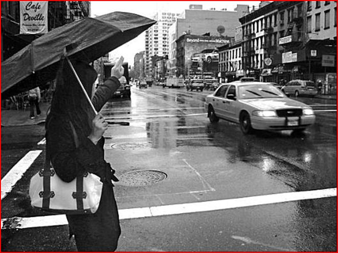 1. no se cuál era el libro que leí recientemente y que estudiaba comportamientos aparentemente irracionales,llegando a la conclusión de que los comportamientos al final resultan mucho más racionales de lo que parecen en un principio. ¿Y si resultara que conducir un día de lluvia es mucho más incómodo? ¿Y si resulta que es mucho más fácil atropellar a un peatón un día de lluvia? ( doy fe de que lo es, y en Estados Unidos la responsabilidad en caso de atropello es muy costosa) ¿Y si resulta que aunque los días de lluvia la gente que hay en la calle tiene mayor tendencia a coger un taxi, pero hay mucha menos gente en la calle? Quizá los días de lluvia la gente prefiera quedarse en casa leyendo este blog, lo cual en todo caso no me parece mala idea.