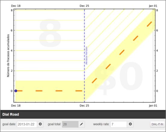 La primera semana, para habituarme a este cambio, la cuota será cero. En la segunda semana, ya estaré obligado a cometer el error pactado diario y los 7 semanales.