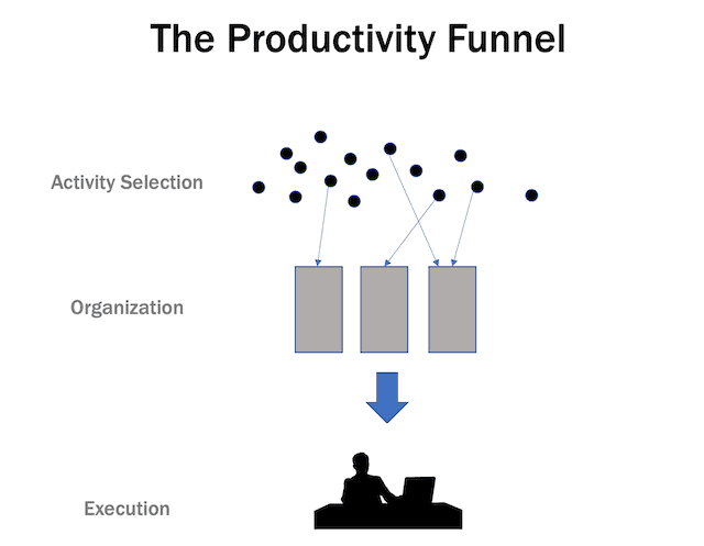 En esta línea, el autor habla en su blog de un concepto útil muy relacionado con lo anterior: el embudo de la productividad14.