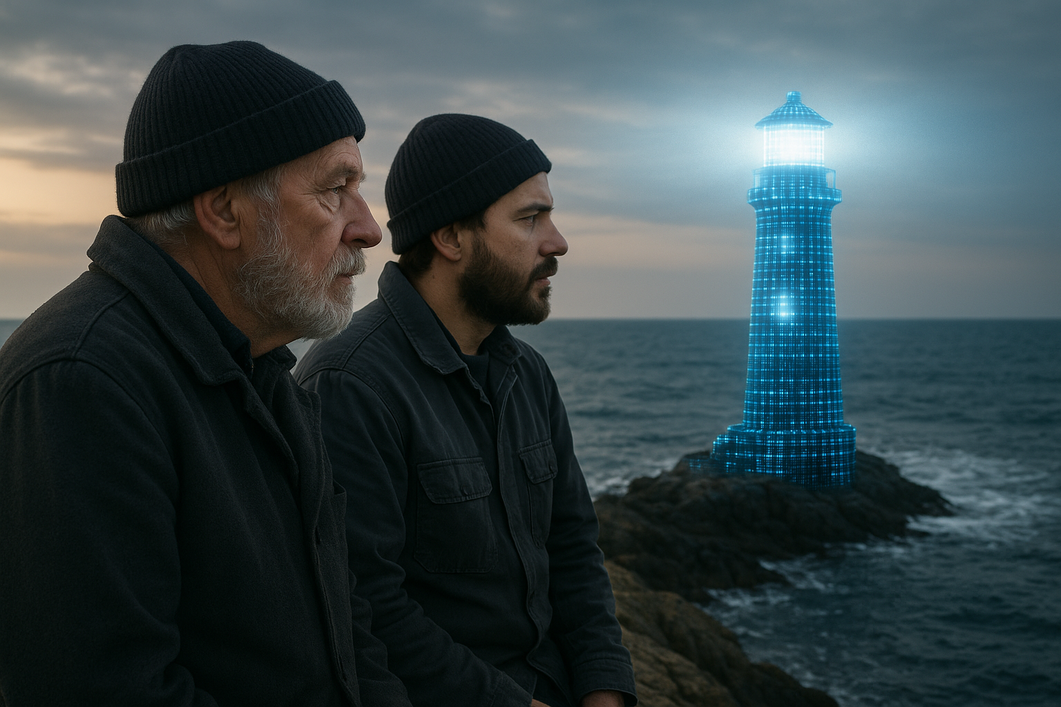 La conversación se parece a dos fareros frente al mar digital: uno ha añadido su gota de agua al océano, el otro ha vivido encerrado en el faro leyendo Moby Dick; ahora ambos observan la costa. Saben que la marea de la inteligencia artificial no se puede detener, pero sí iluminar para que los navegantes no se estrellen contra las rocas del shock y la desesperación.
